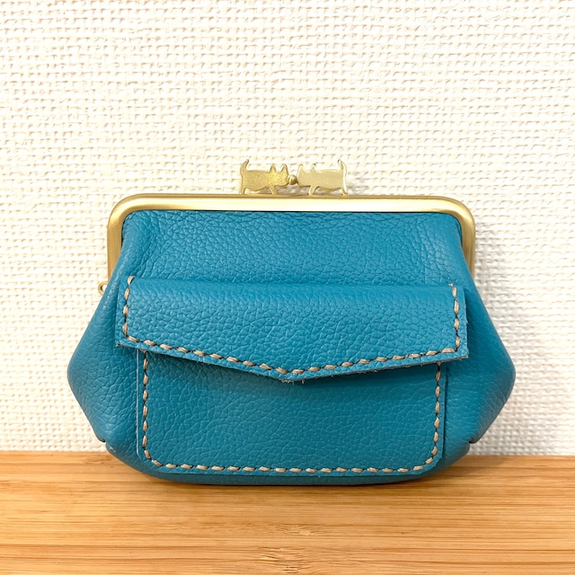 カードケースか、はたまたコインケースが、そんなふうに見えるサイズ感。 でも、こんなに小さくてもお部屋が3つ。 ぱかっと開くと中にもう一つがま口がある「親子がま口」だから、小銭とお札とカードそれぞれを分けて収納できるのです。 しかも、カードサイズのお財布なのにお札は二つ折りで大丈夫。 小さく折り畳まなくても収納できるように、そしてさらにお札がかさばらずにぴたりと収まってくれるような工夫をしました。 がまぐちのパッチン部分がネコさんになっている、とくべつな口金を使った親子がまぐちです。(ただし内側の子がまぐちは普通の口金となっております。画像にてご確認くださいませ) 使いはじめはネコさんのパッチンがやりにくいかな、と感じることもあるかもしれません。 お使いいただくうちに自然に手が慣れてくるとは思いますが、コツはネコさん達の間にある小さな玉に力がきちんとかかるようにすること。 この小さな玉がパッチン部分ですので、ここに力がきちんとかかるように開け閉めすると気持ち良く「パッチン!」となるはずですよ。 やわらかでふかふかな手触りの本革を使用しました。 ネコさんの耳先からがま口の底までの高さがわずか10cm 。 大きなほうのお部屋はカードが収納できるくらいのサイズ感。 サイズ的には二つ折りのお札が入る深さはないのですが、子がまぐちの下を通り抜けて反対側のお部屋へ逃がしてあげることができるので、深さ以上のサイズも収納OKというわけです。 また、お札を収納した時にパカパカと浮いてしまわないよう、底をオープンにしたポケットを付けました。 ここにお札を入れてあげるとすっきりと収まってくれます。 底にはマチを付けて少しだけぷっくりさせているので、収納部分がぱかっと大きく開いて中が見やすくなっております。 小銭入れとなる真ん中の子がまぐちもぱかっと大きく開いて見やすくなっております。 浅いのでたくさんは収納できませんが、底に沈んだ小銭が取り出しにくいというストレスからは解放されそうです。 できるだけシンプルに、できるだけコンパクトに。 でも、ちゃんとお財布としても使えるように。 お札もカードも小銭もきちんと収まる場所がある、小さな小さなお財布。 口金をぱかっと開けば中身が見渡せる、見た目も使い勝手もシンプルなミニ財布。 小さなバッグでお出かけしたい時や、ポケットにお財布をしのばせてふらりとお出かけしたい時などに活躍しそうなサイズ感ですよ。 ※大きさの目安 口金サイズ:12㎝×6㎝ 本体最大幅:約13.5㎝ ネコさんを含めた全体の高さ:約10㎝ 親がまぐち収納部分深さ:約6.5cm 内側子がま口金幅:約10㎝ 子がま口収納部分深さ:約4.5㎝ [購入時の注意点] ※ネコさんのパッチン部分はとてもデリケートです。もちろん通常使用には問題ないものではございますが、長くお使いいただけるようネコさんに無理な力をかけることなどはできるだけなさらず、やさしくお取り扱いくださいますようお願い申し上げます。 ※ご購入前に作品の「サイズ」や「素材」を十分にご確認頂きますようお願い致します。 ※画面上と実物では色が異なって見える場合があります。ご不明な点がありましたら、お問い合わせください。 ※天然皮革のため、傷やしわ、ゆがみなどはすべて革の個性と考え、そのまま作品に使用しております。 また、ほとんどの作業を手縫いで行っているため、縫い目の乱れなどがある場合もございます。 これらのことをご理解いただき、一点ものの手作り雑貨の味わいとして楽しんでいただける場合にのみお買い上げくださいますようお願い致します。