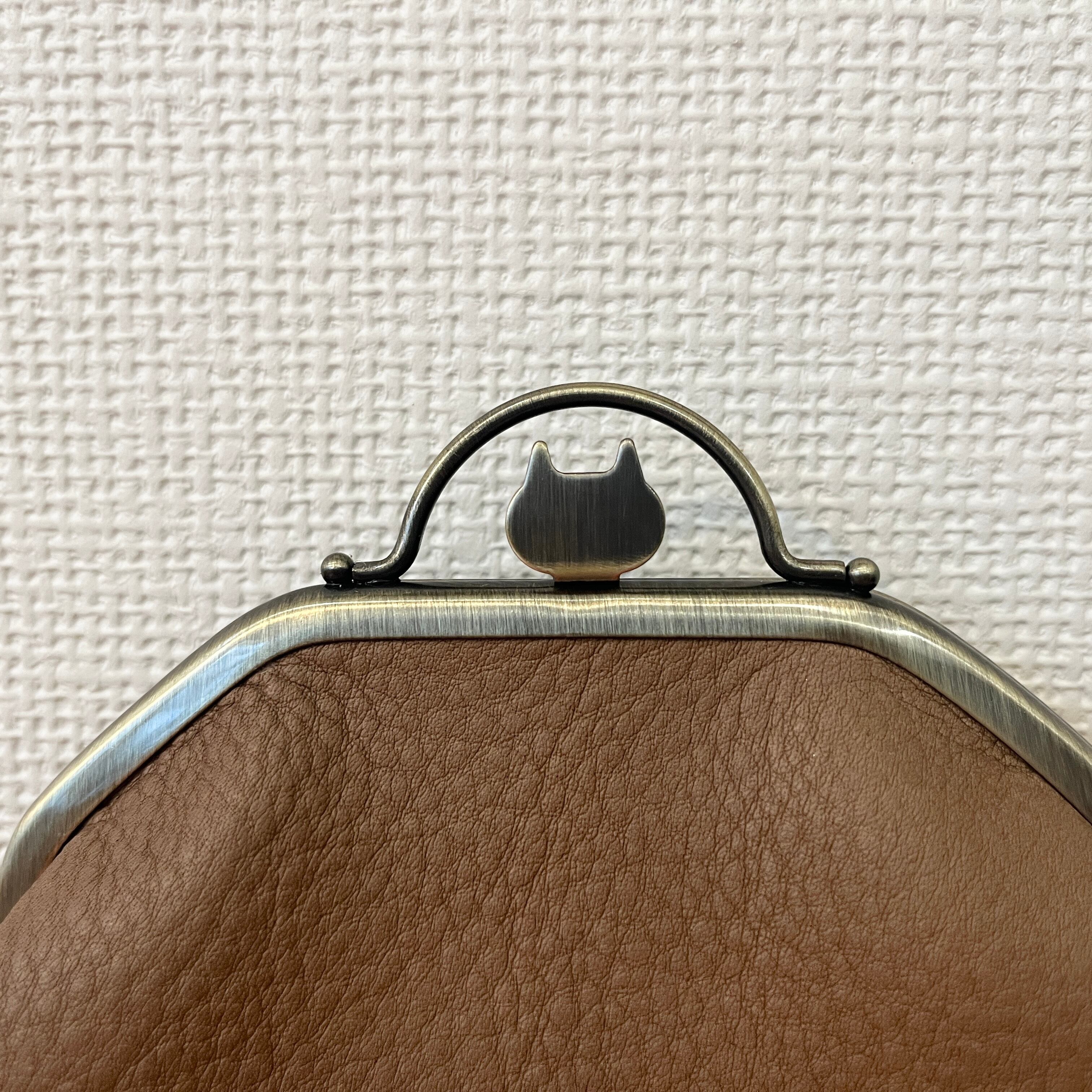 革はぎれ救済アウトレット*ペコッと押したらぱかっと開く、ネコ押し口金の本革ポーチ