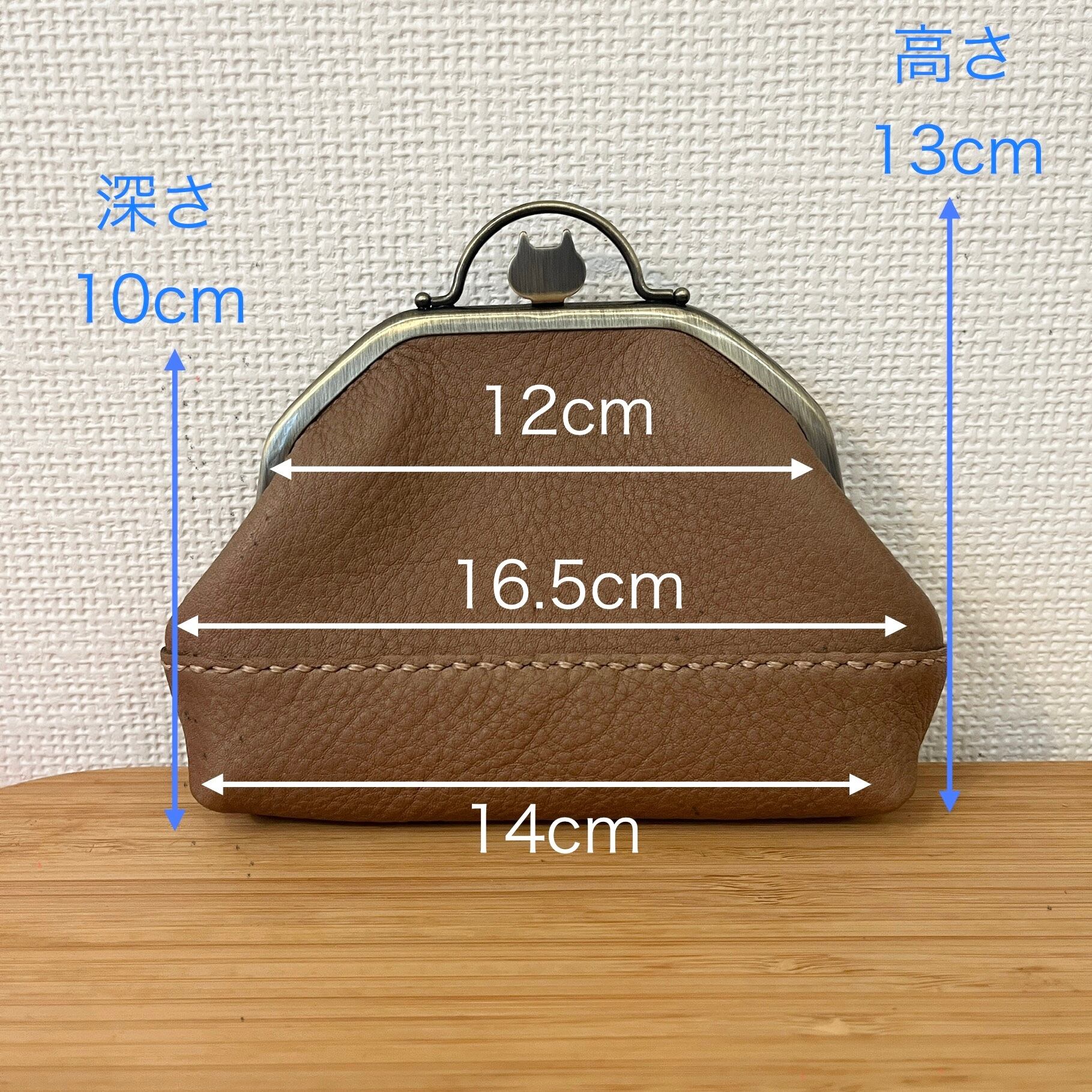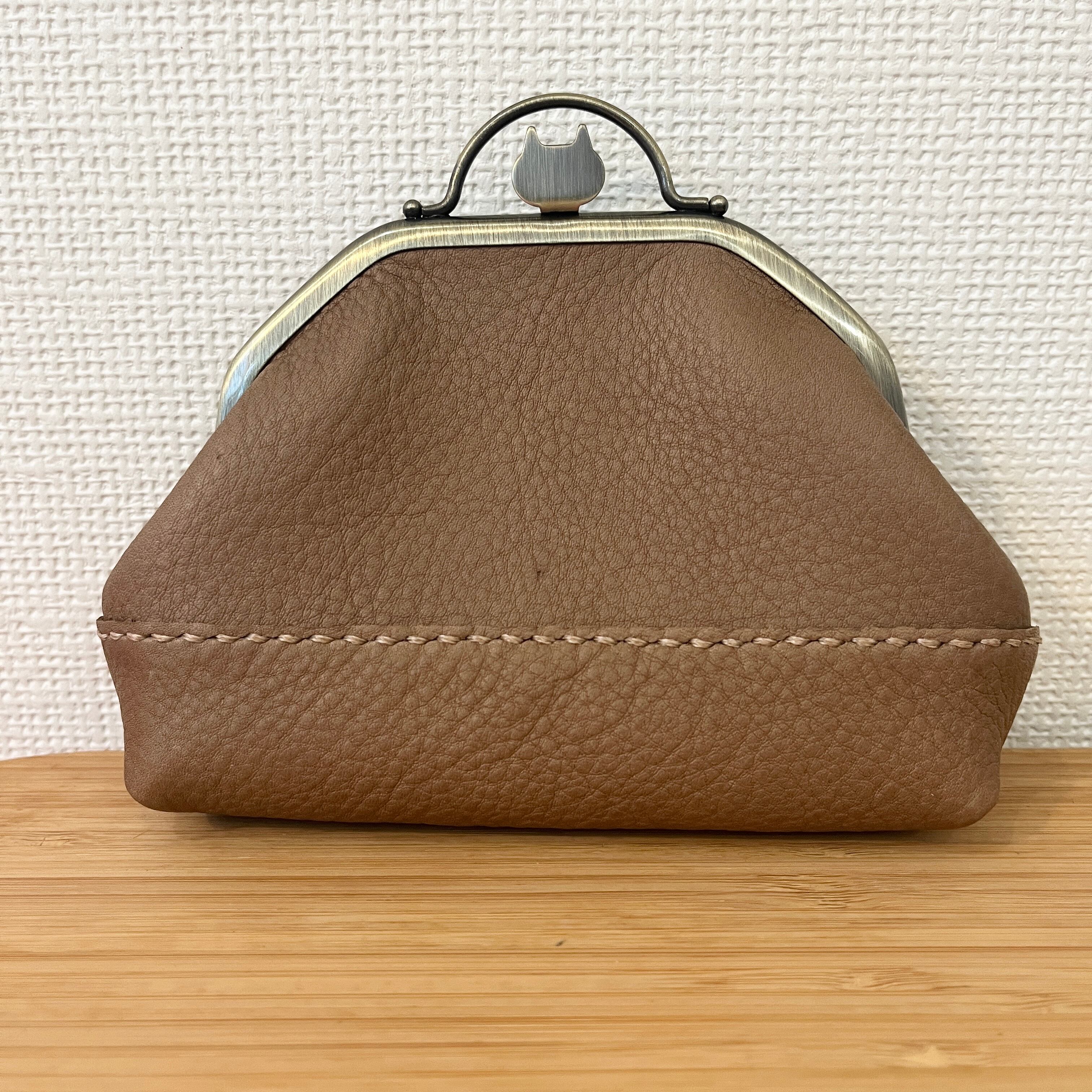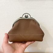 ぷっくりとしたスタイルの本革製がまぐちポーチ。