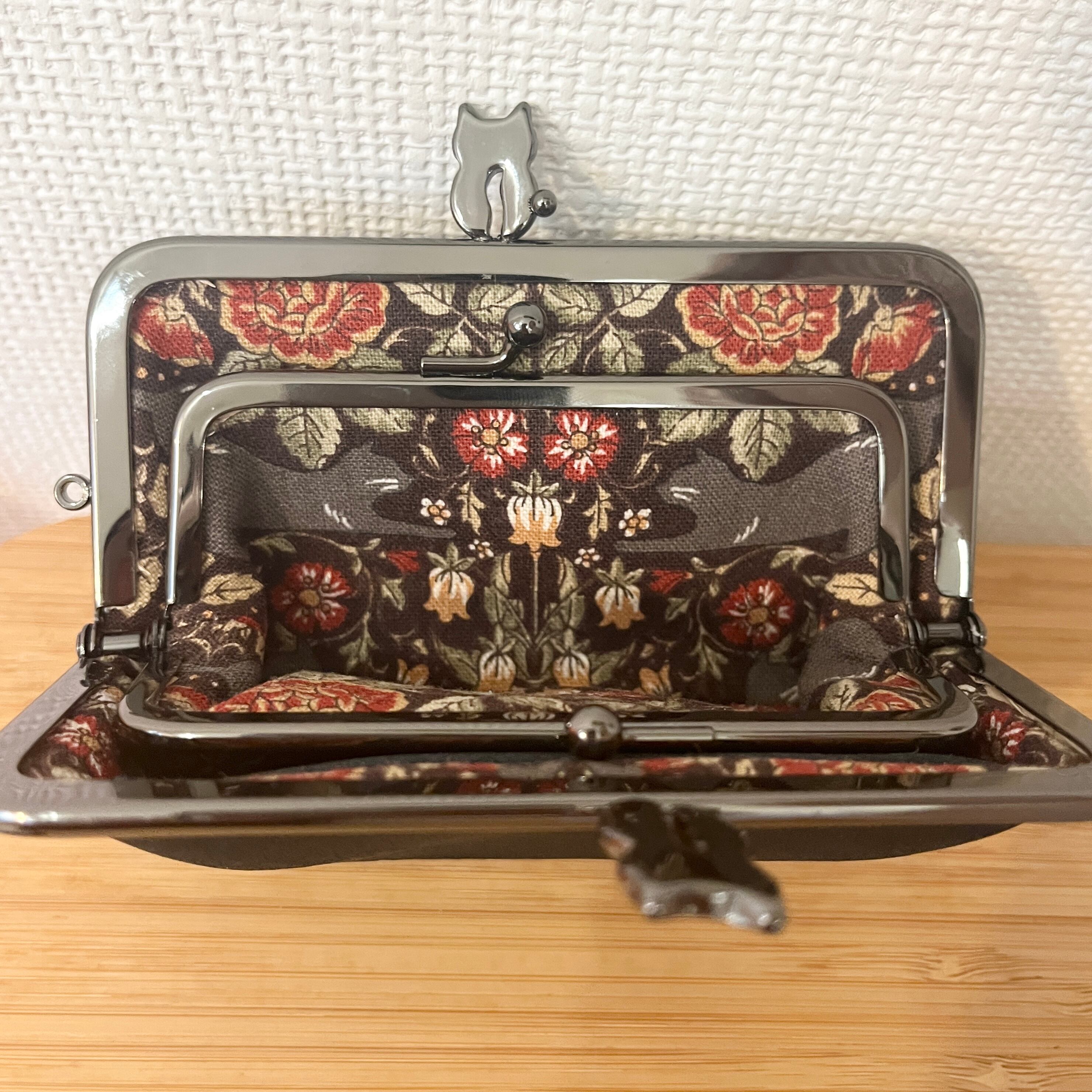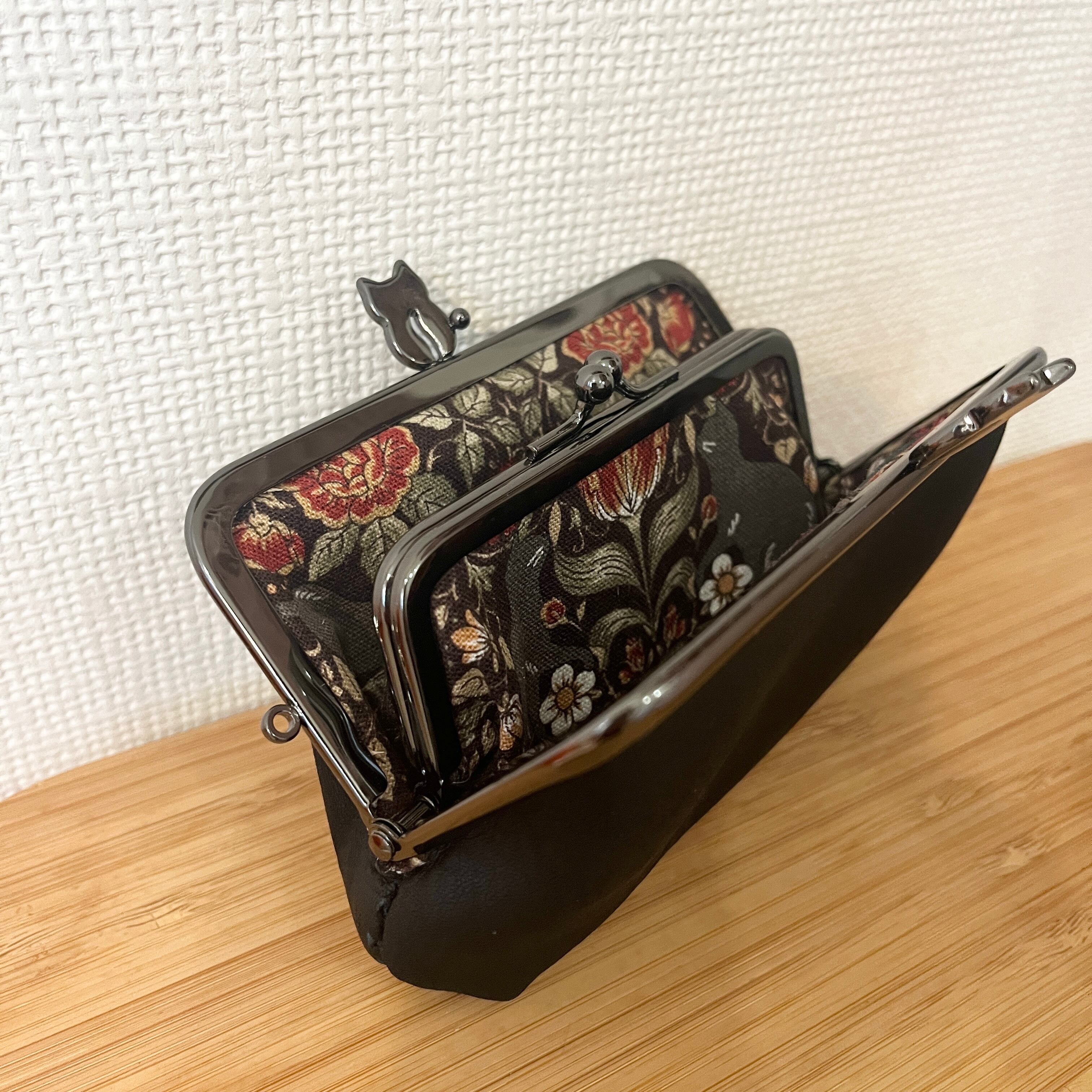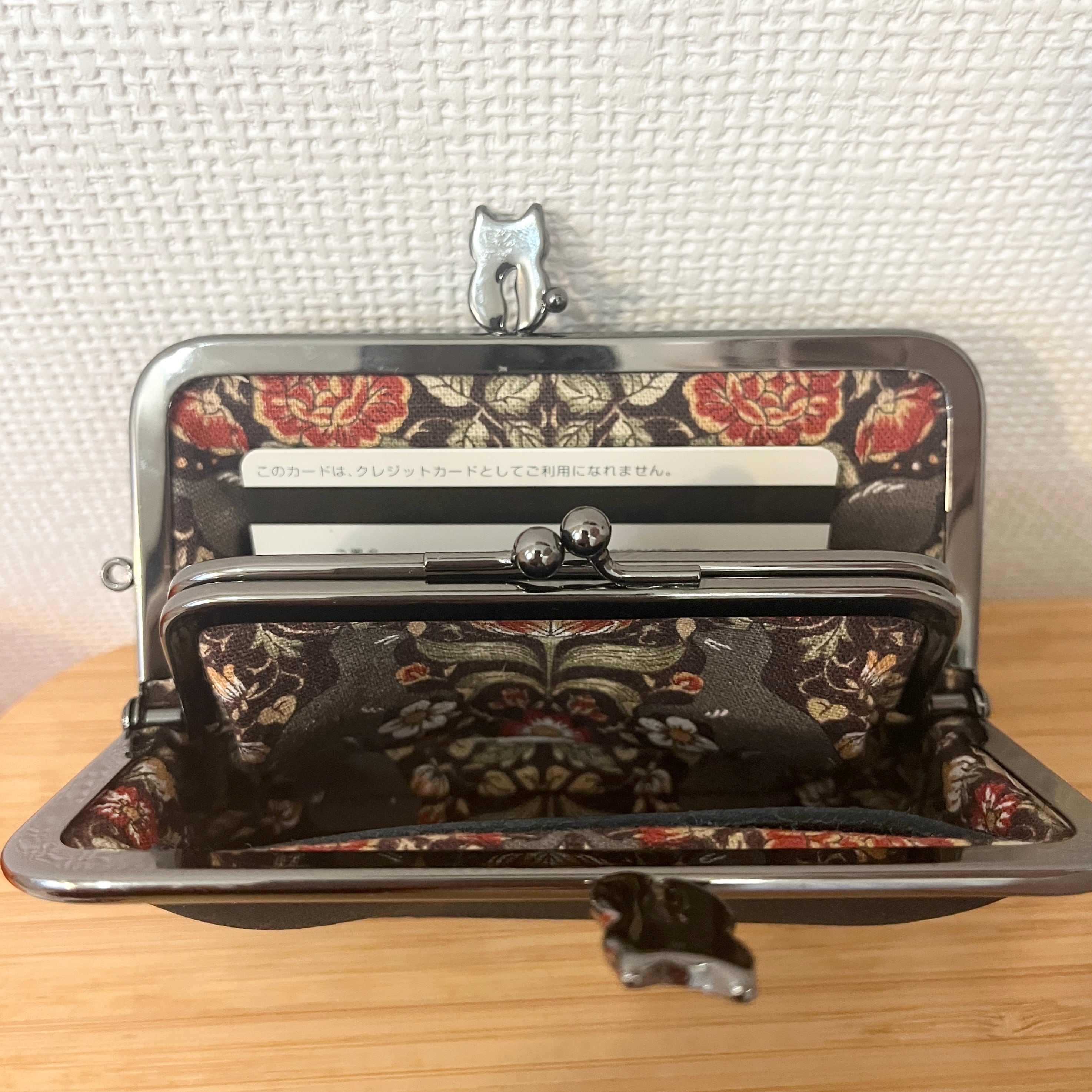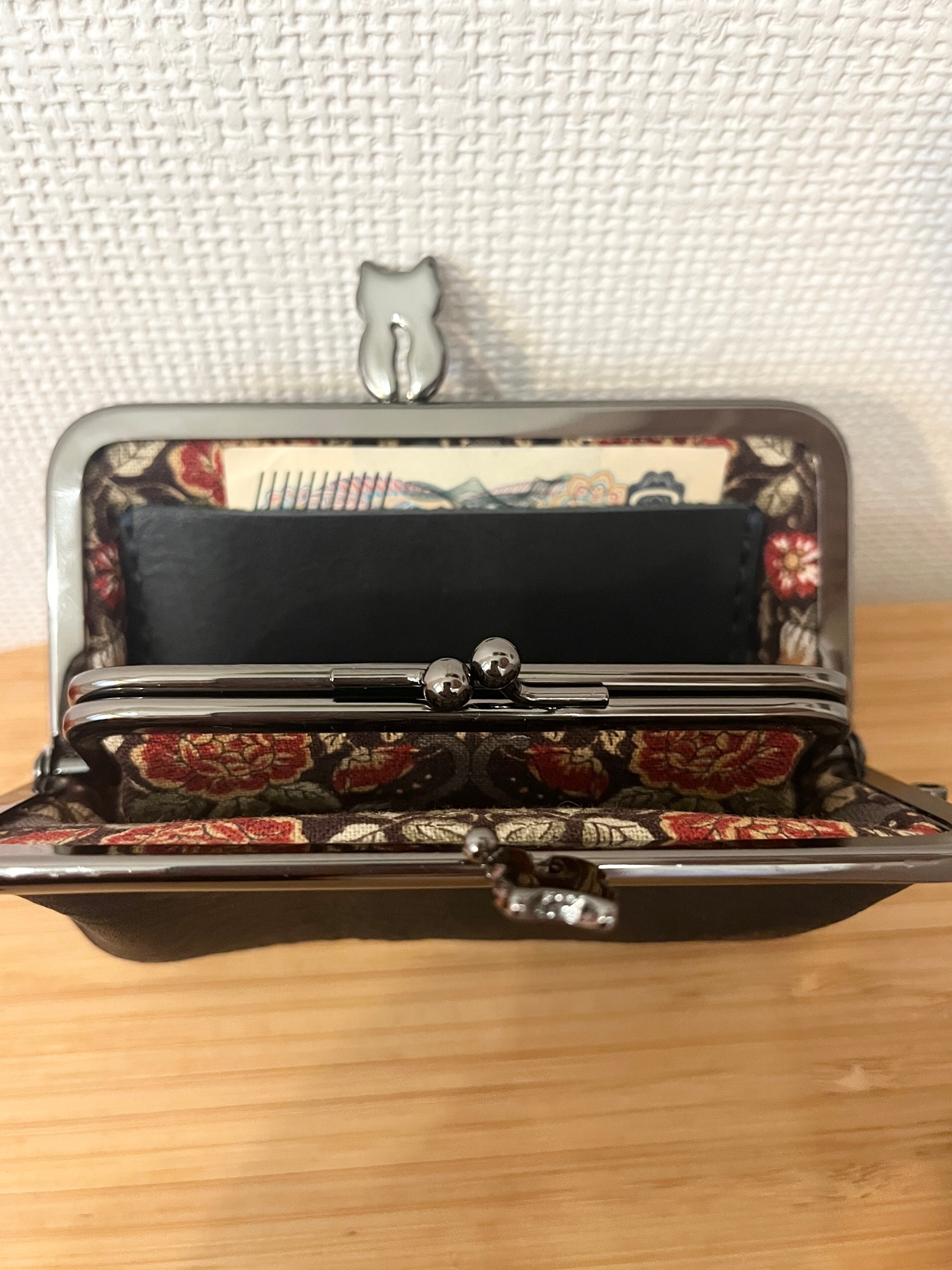 お札が二つ折りで収納できる、カードサイズの親子がまぐち財布(親子黒ねこ口金)