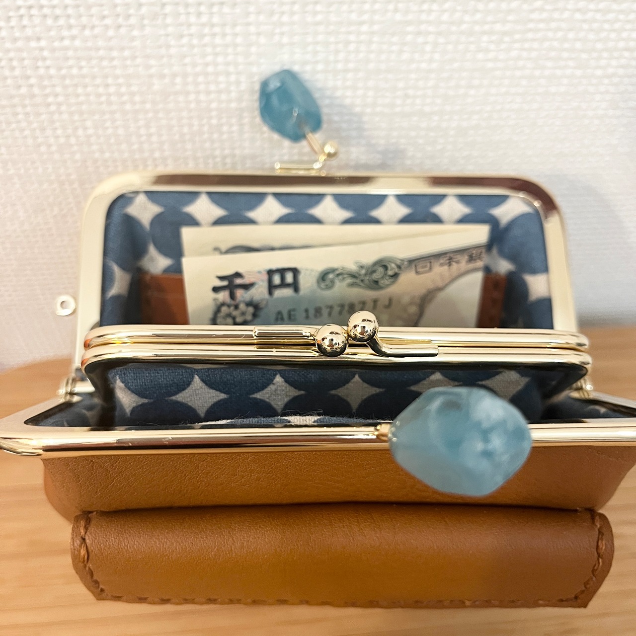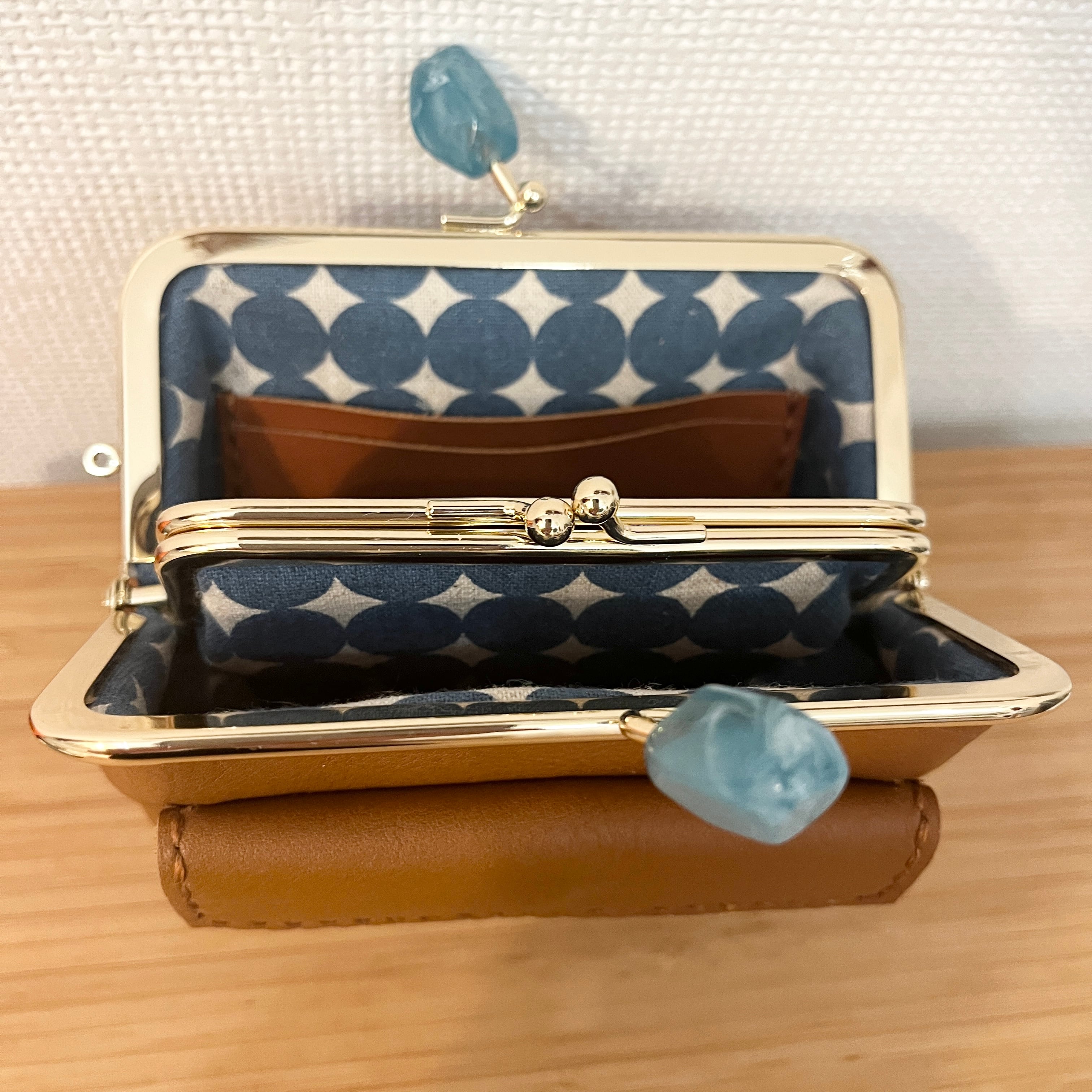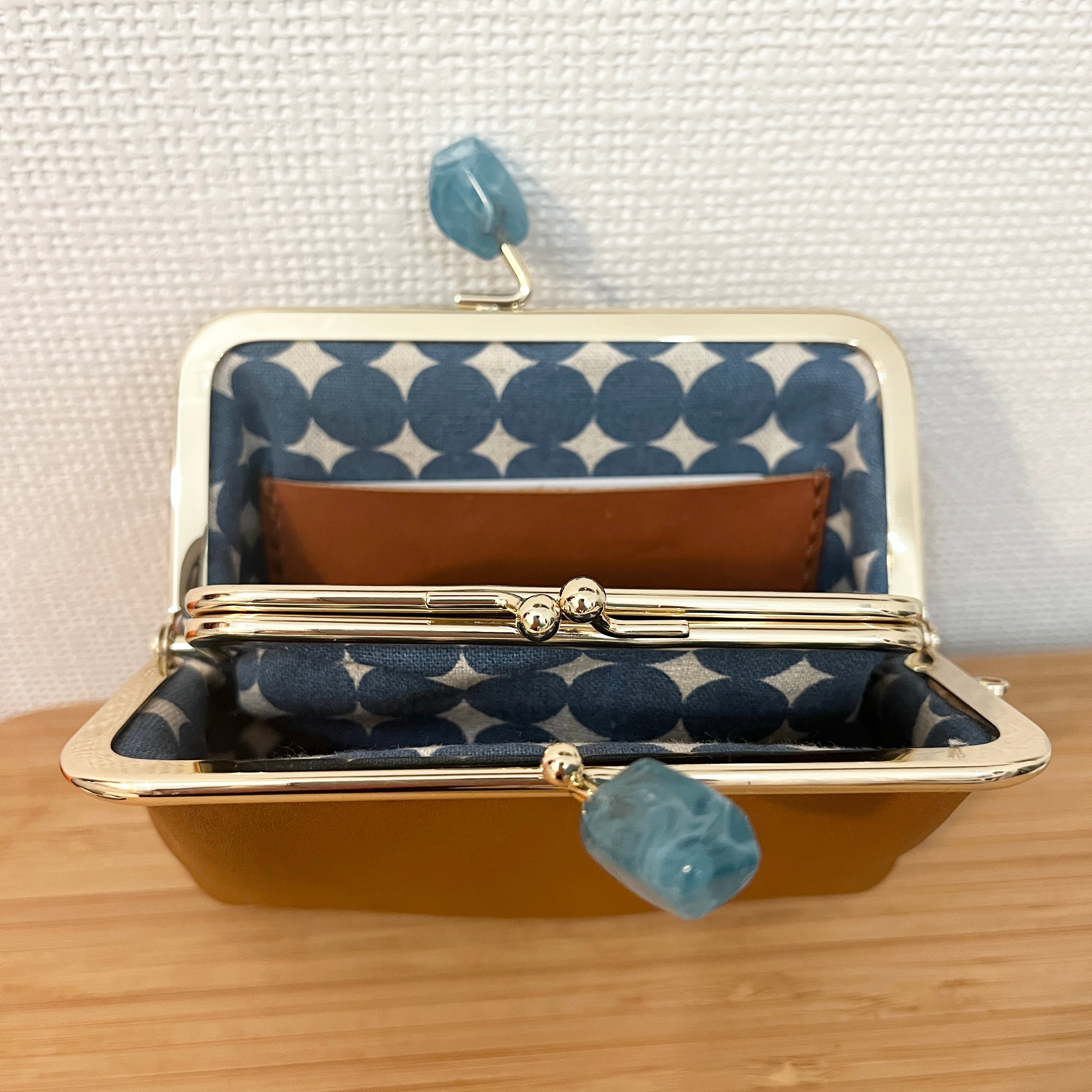 小銭入れとなる真ん中の子がまぐちは、上げ底仕様にしてあえて浅めにすることで小銭を取り出しやすくしました。