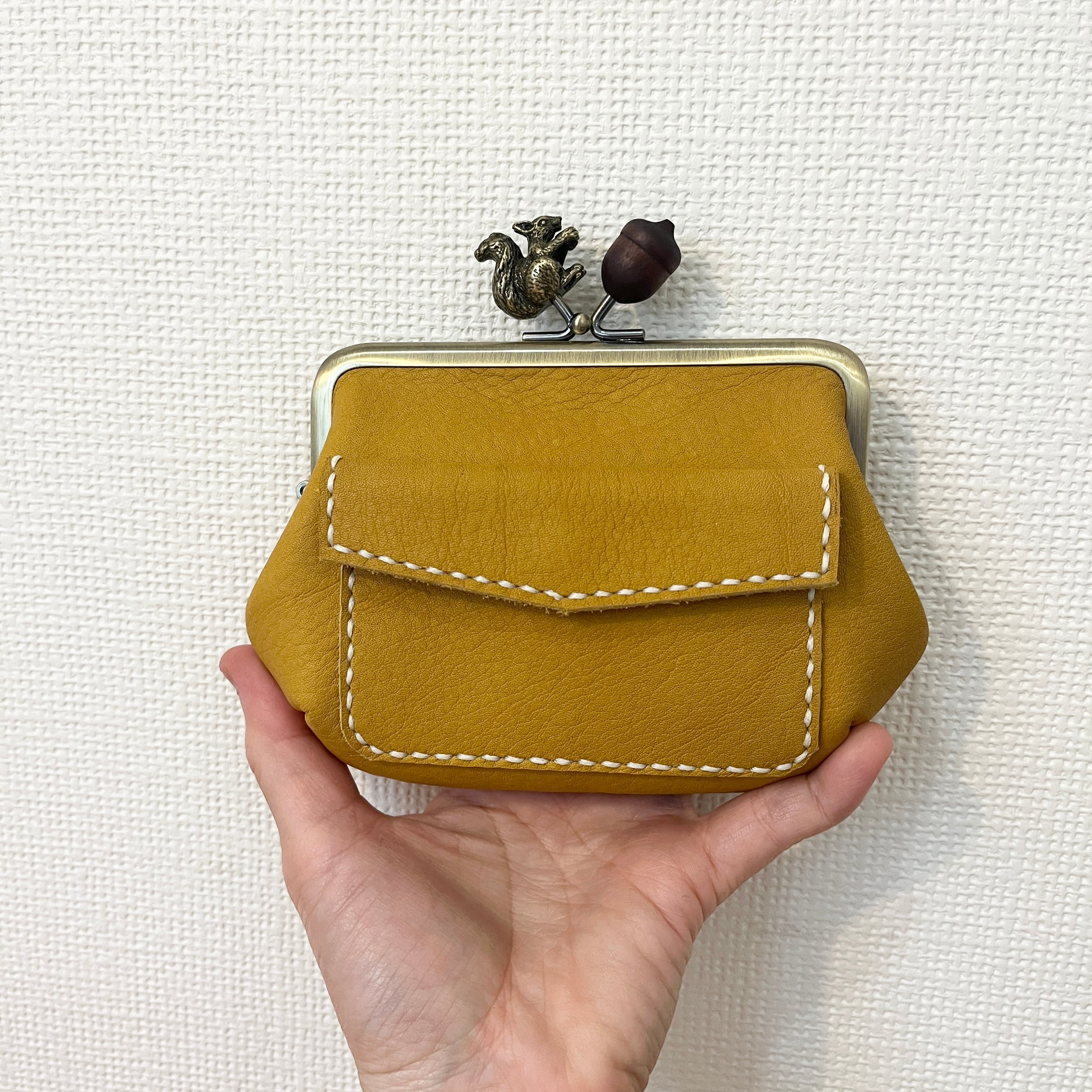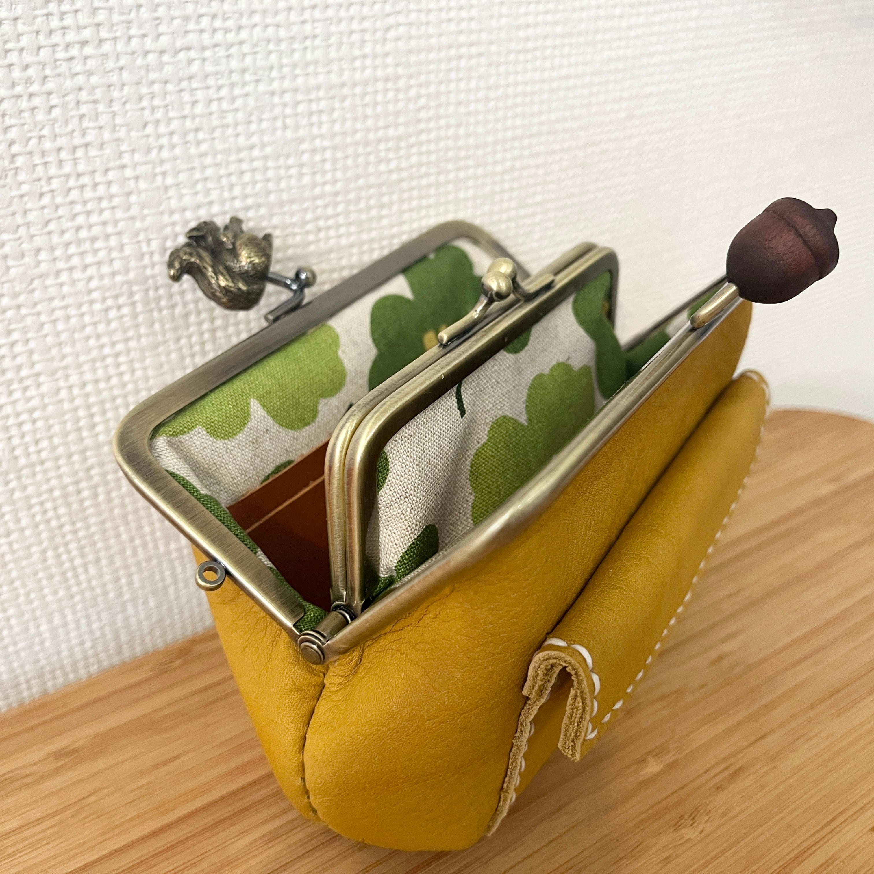 がまぐちのパッチン部分がリス&どんぐりになっている、リス好きさんにはたまらない特別な口金を使用しております。