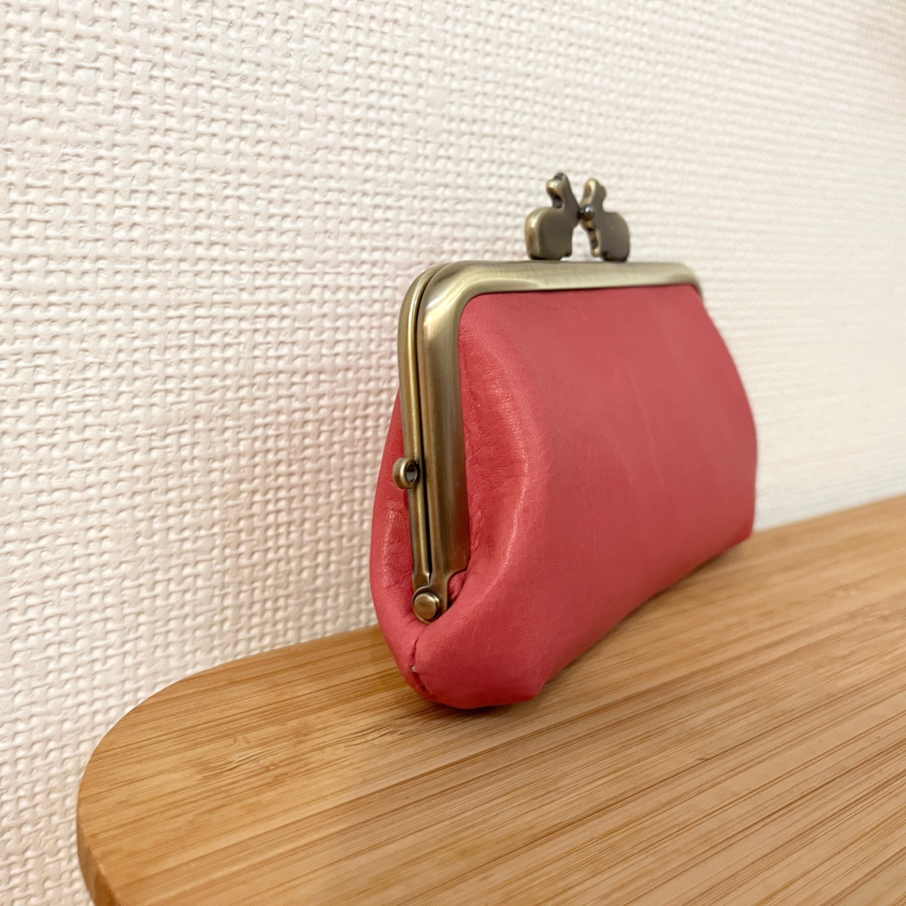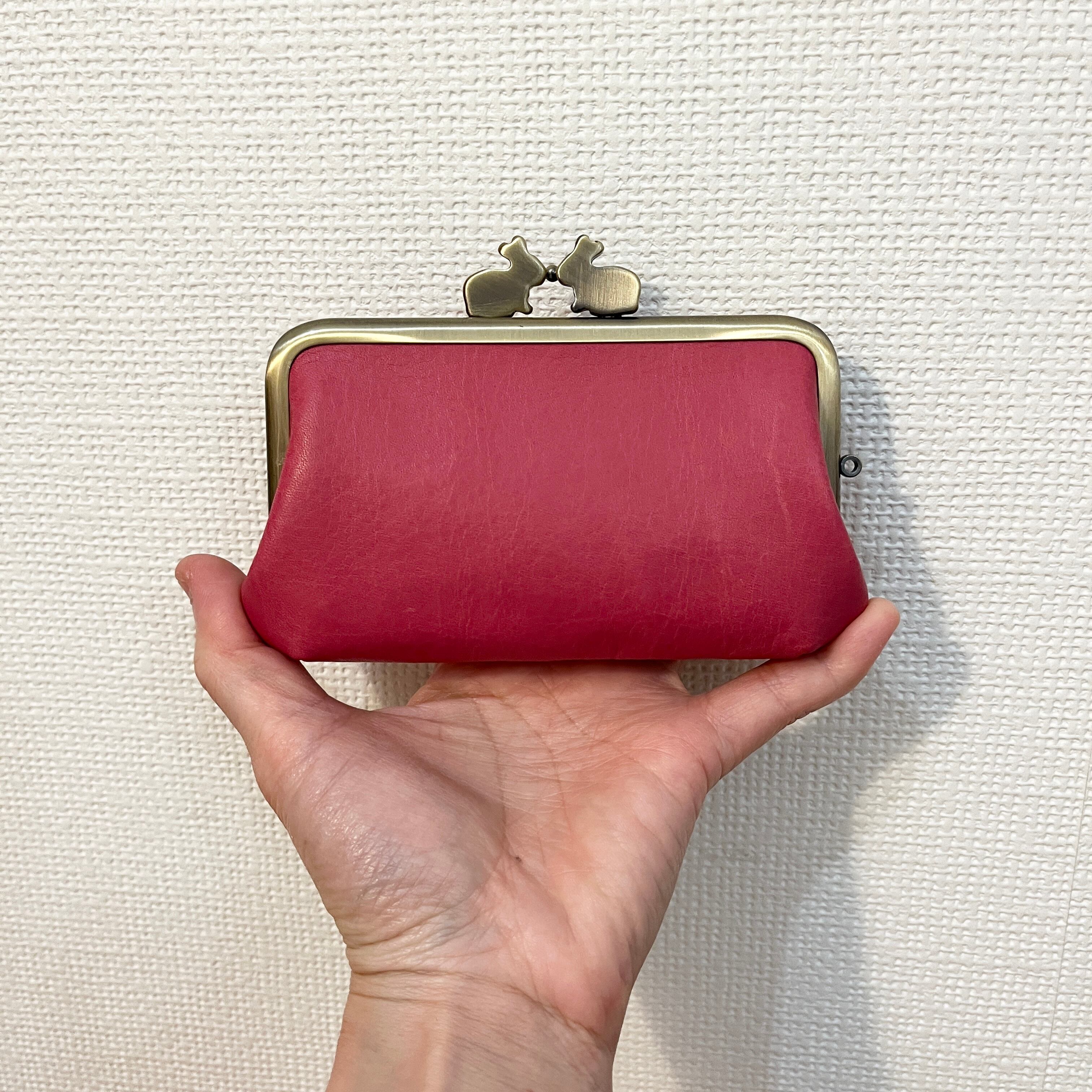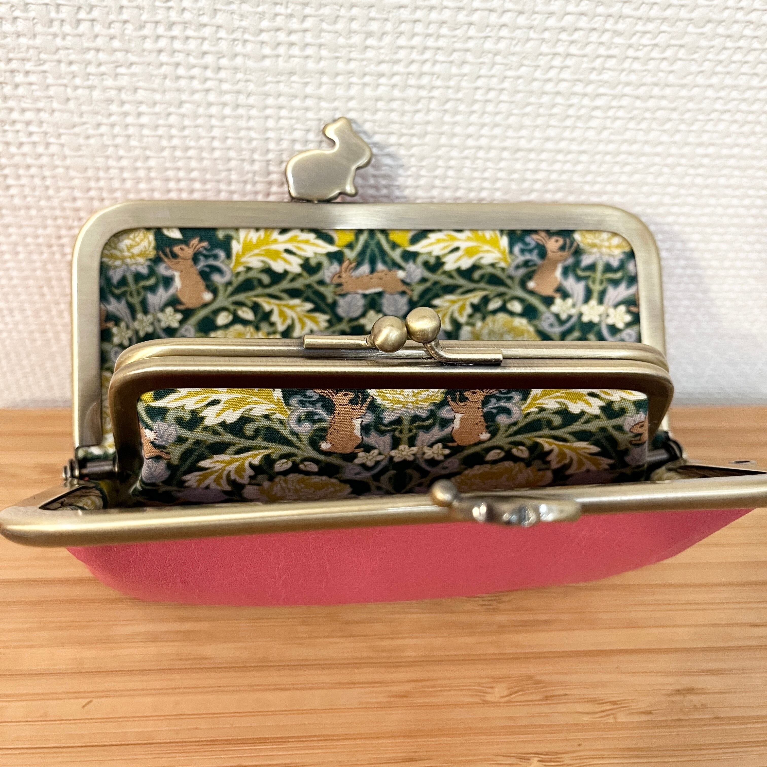 お札が二つ折りで収納できる、カードサイズの親子がまぐち財布(ペアうさぎ口金)