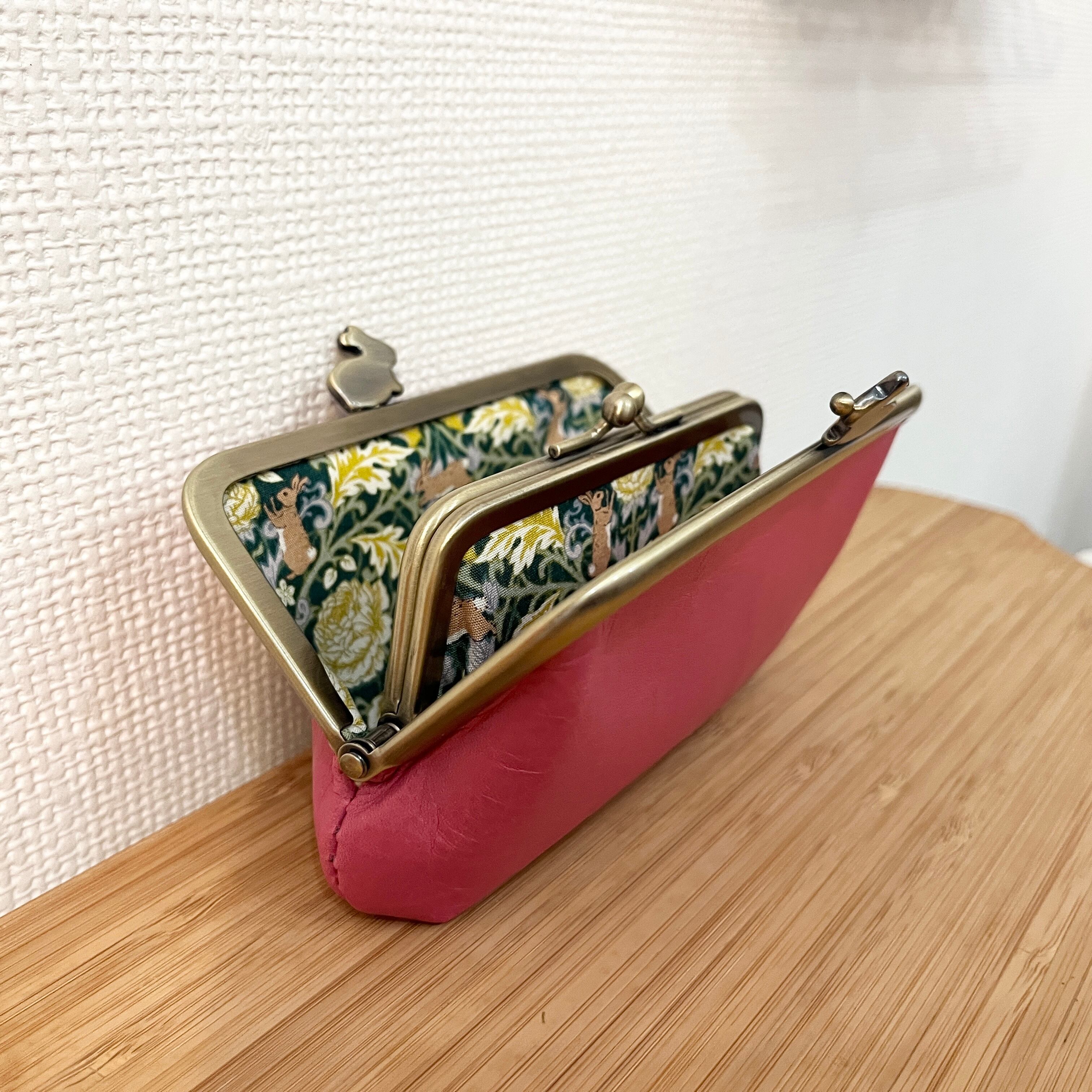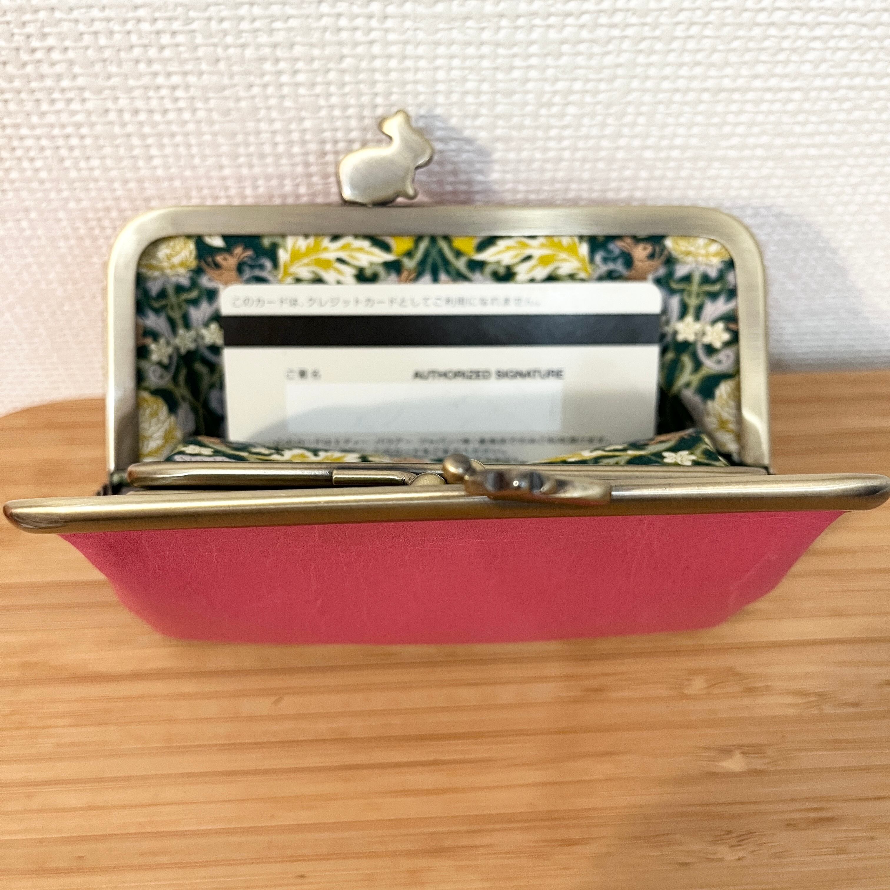 ぱかっと開くと中にもう一つがま口がある「親子がま口」だから、小銭とお札とカードそれぞれを分けて収納できるのです。