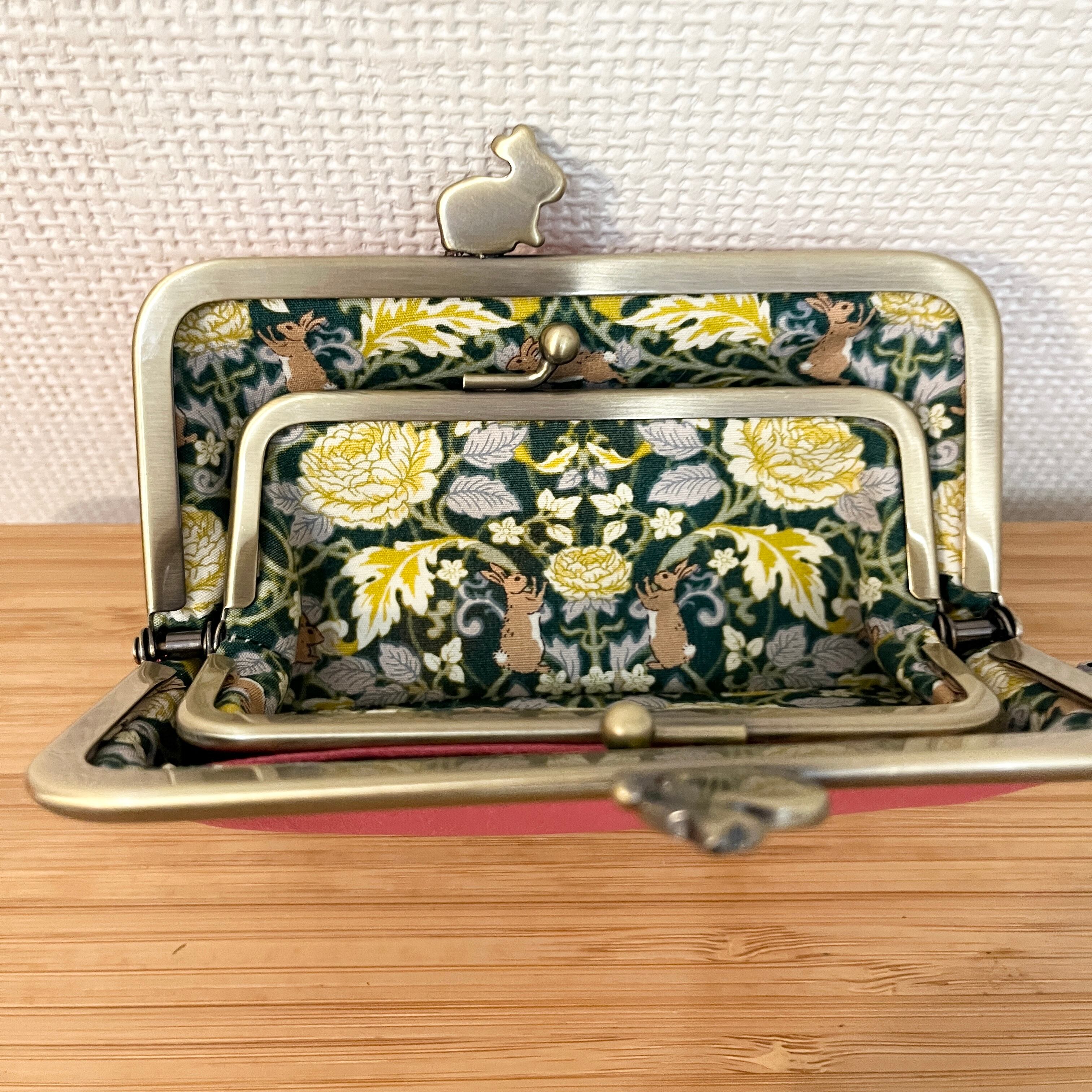 がまぐちのパッチン部分がうさぎさんになっている、とくべつな口金を使った親子がまぐちです。(ただし内側の子がまぐちは普通の口金となっております。画像にてご確認くださ