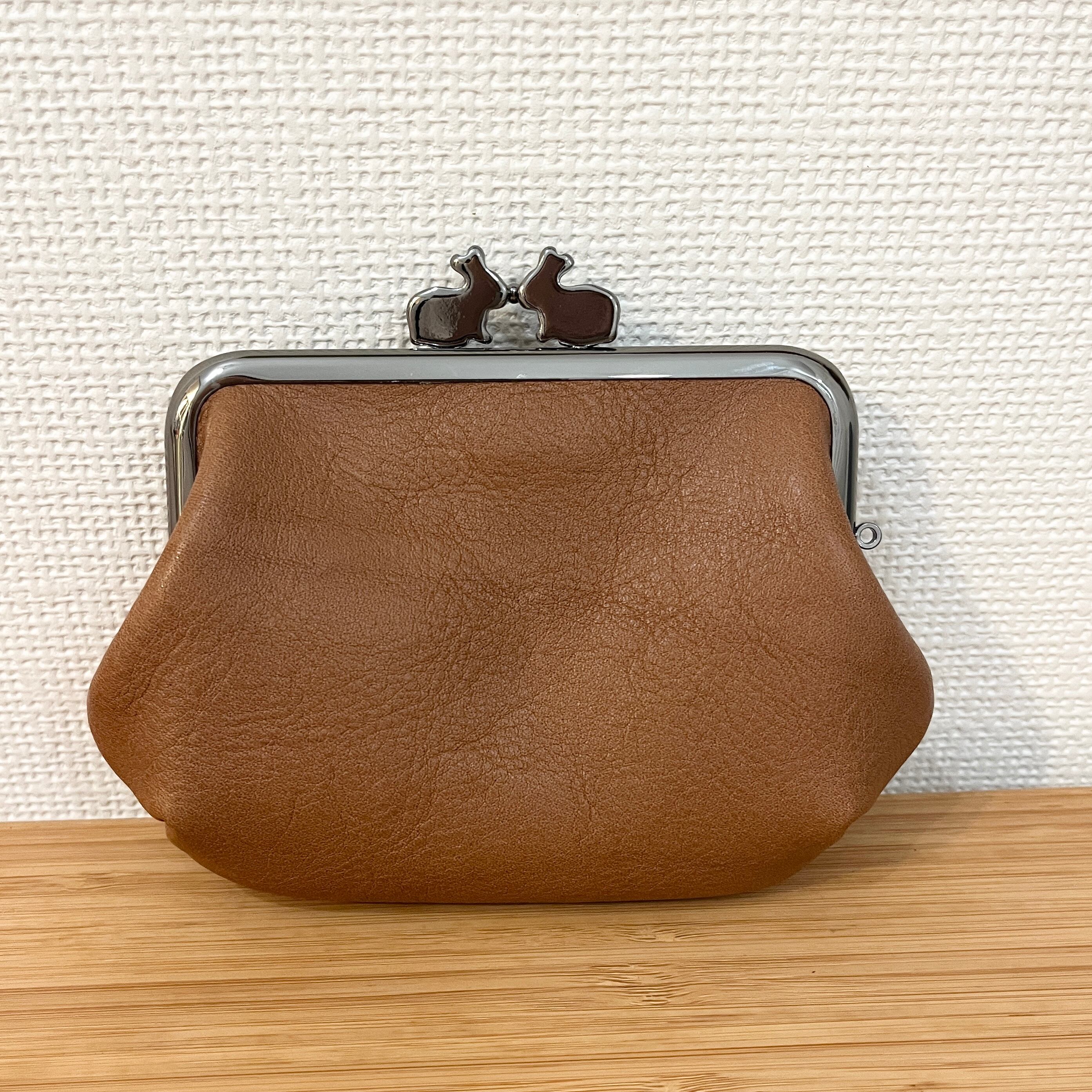 ぱかっと開くとお部屋が3つの親子がまぐち♪外ポッケが付いた黒うさぎ口金の四角い本革ミニ財布