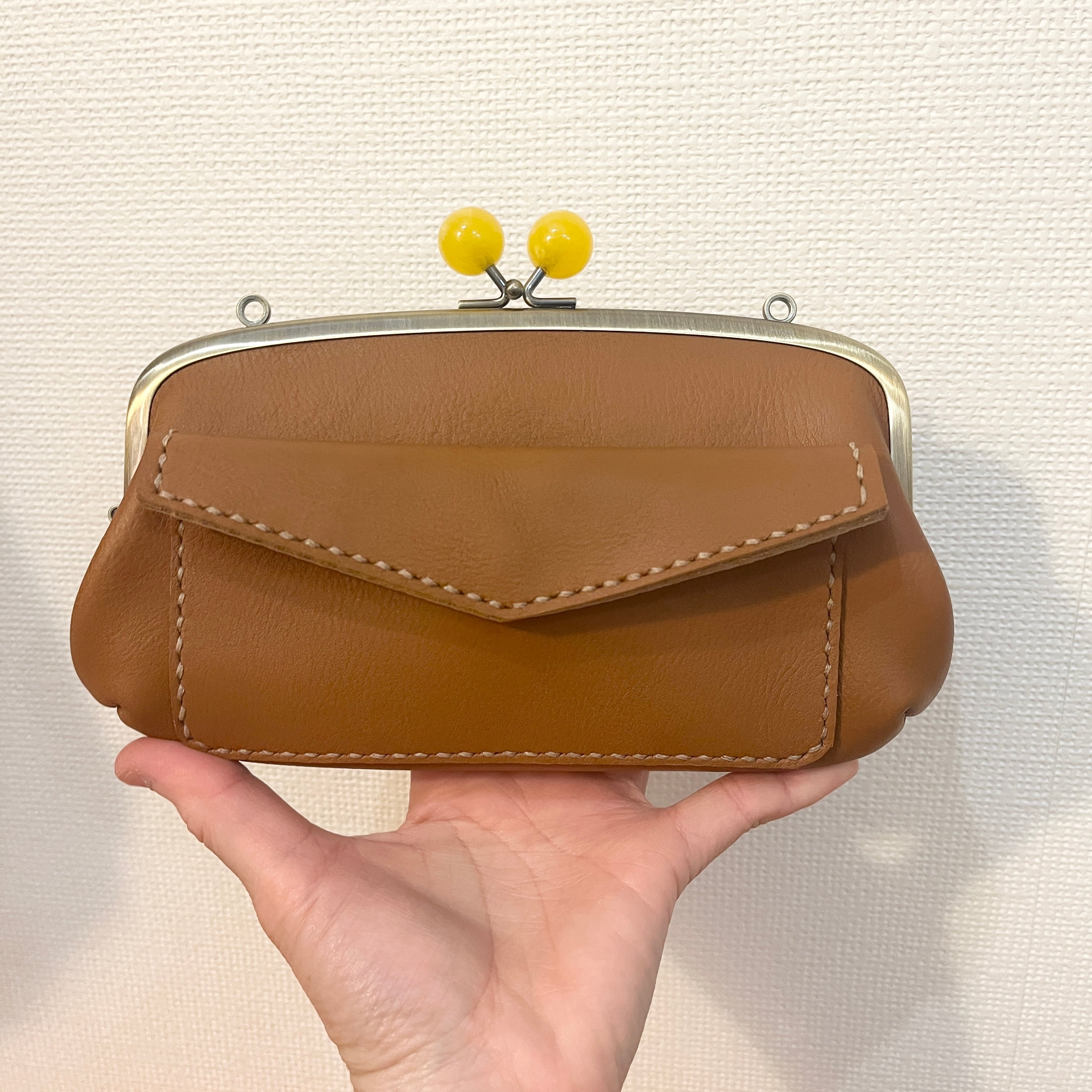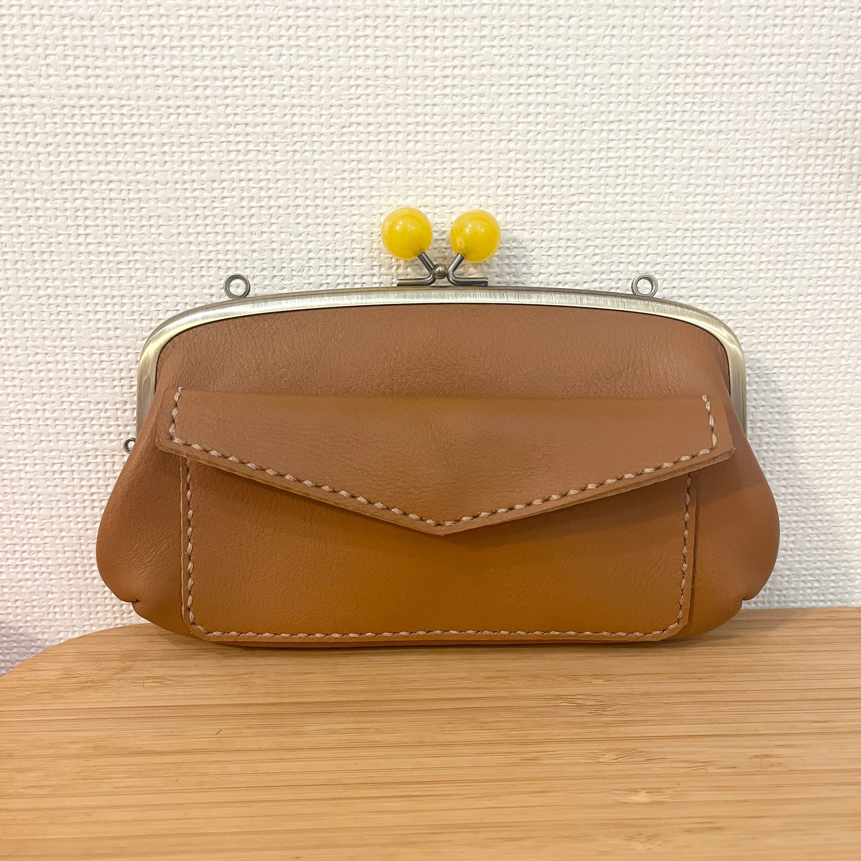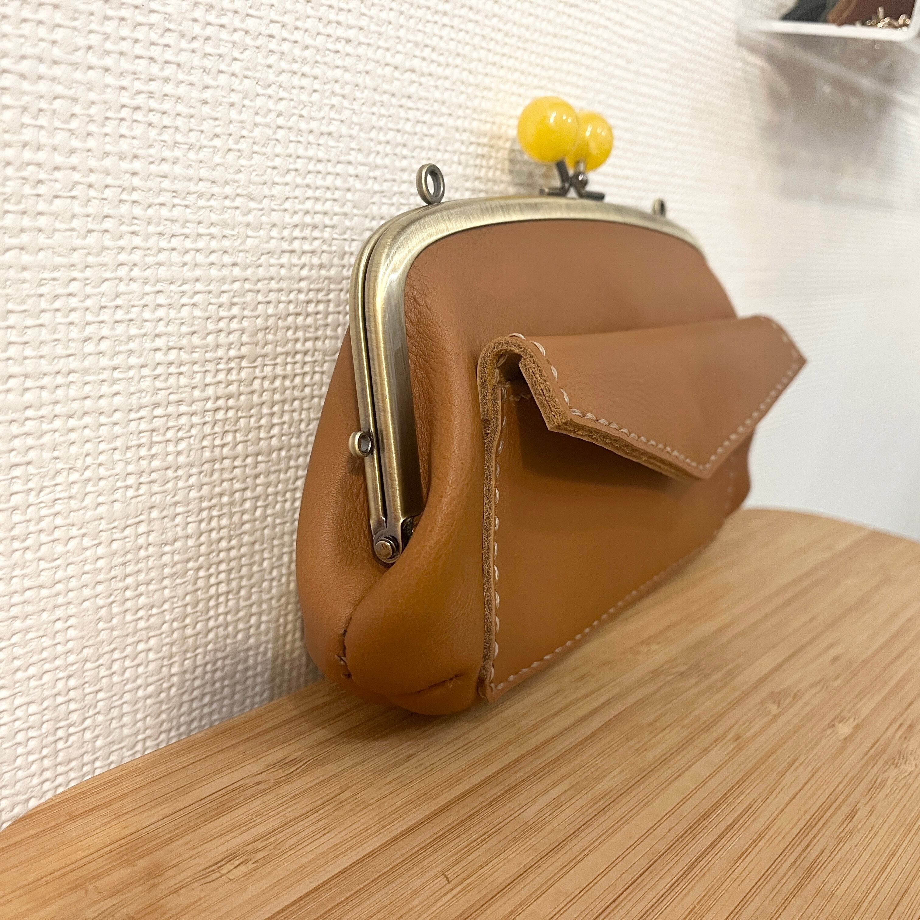 *持ち手のオマケ付き*外ポッケがついた本革親子がまぐち長財布