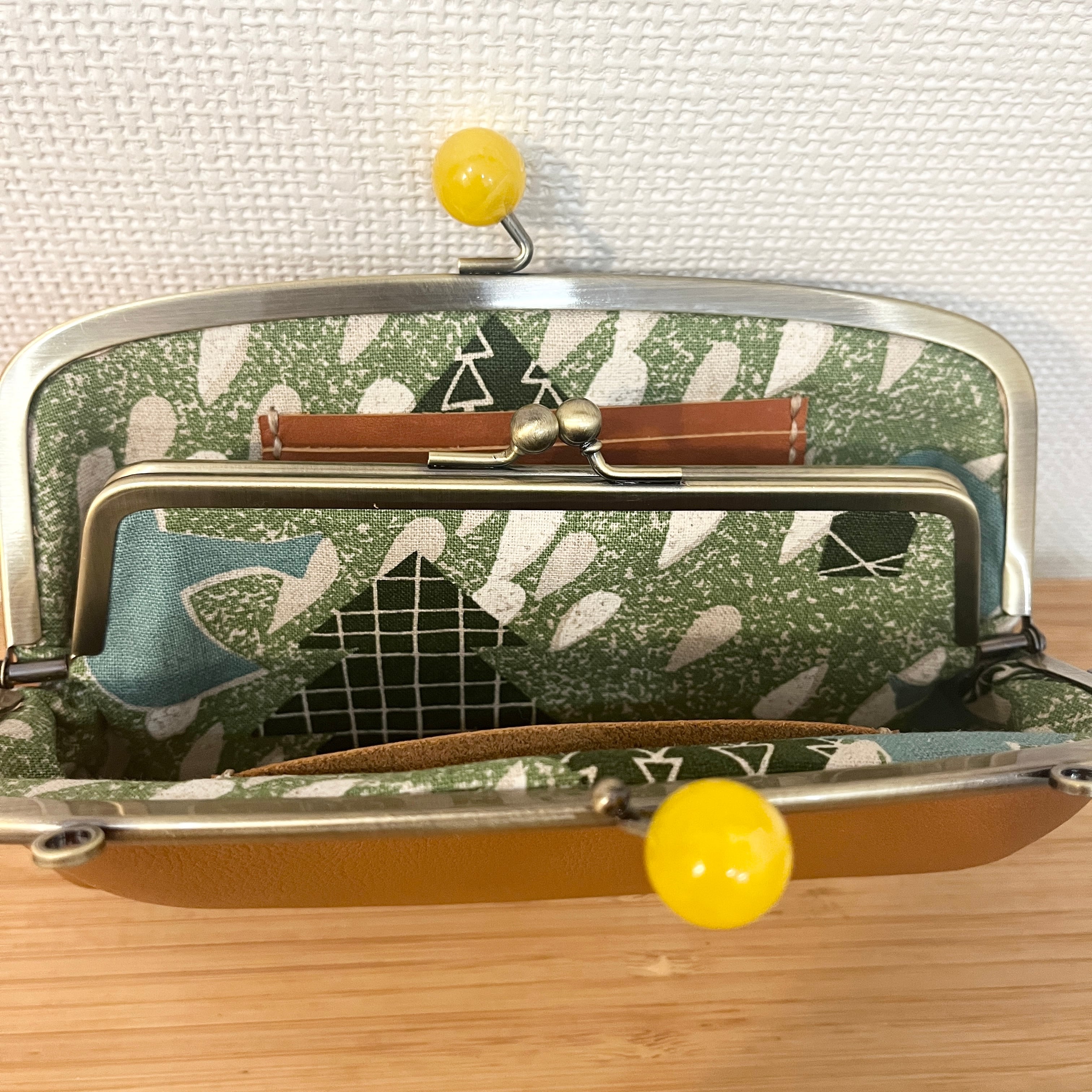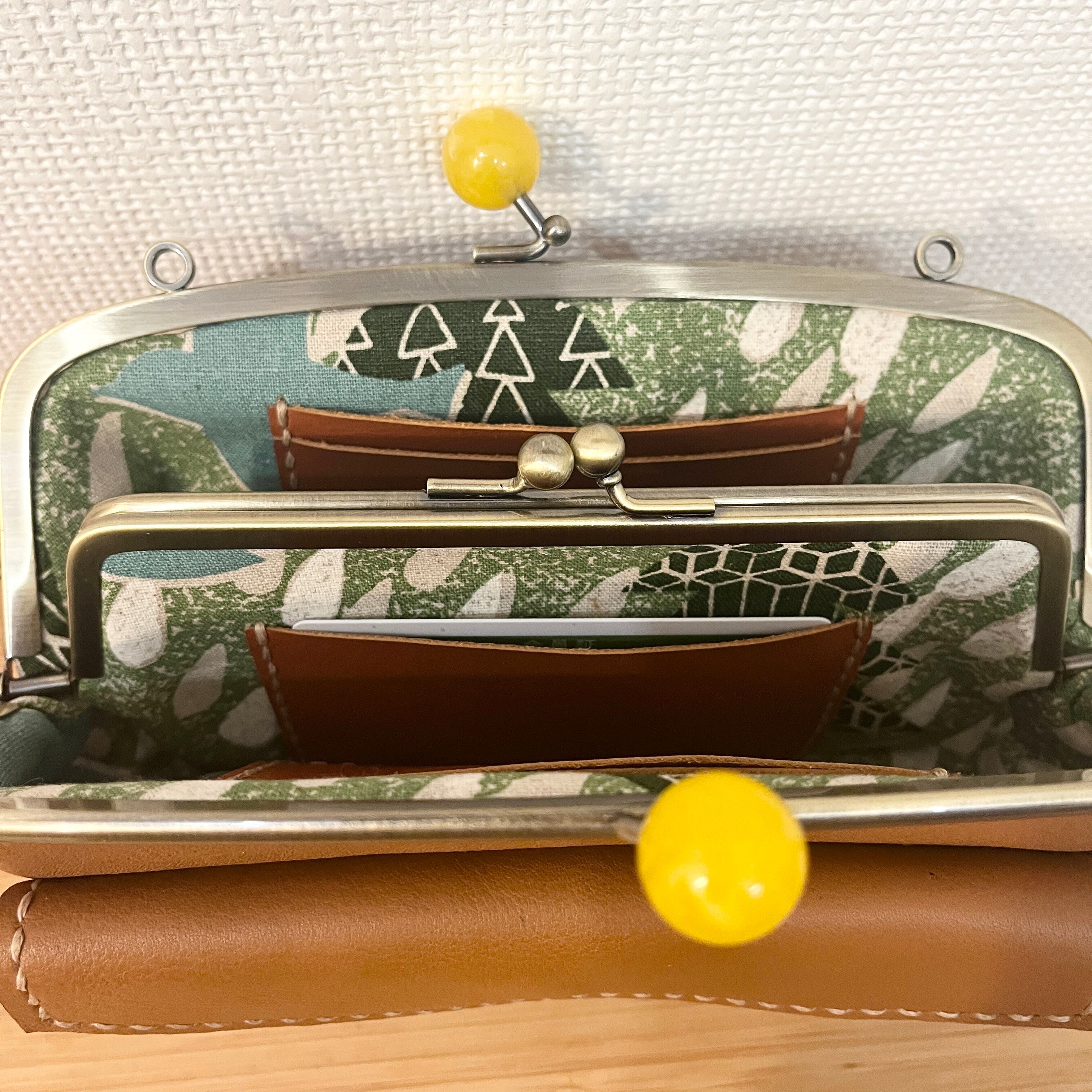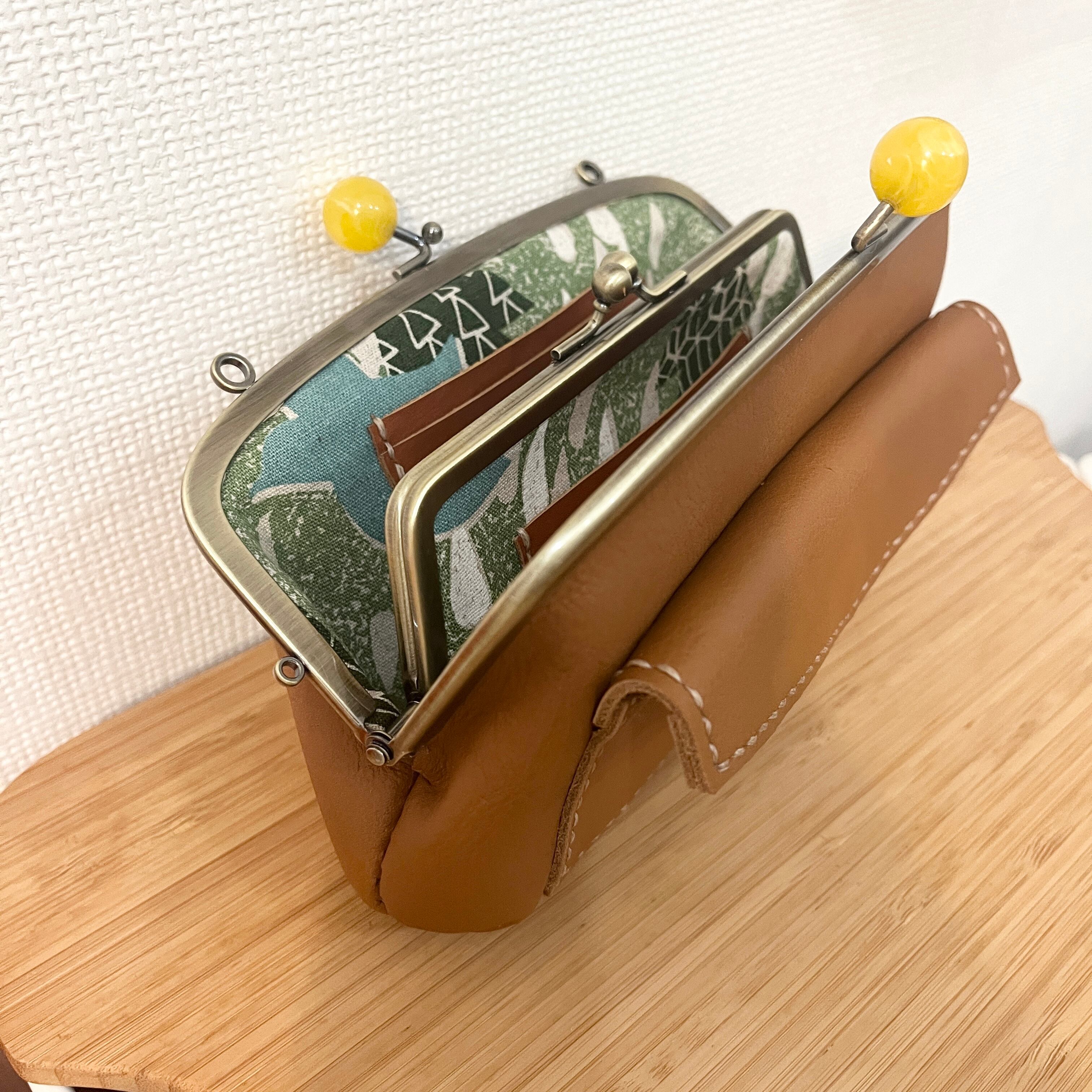 *持ち手のオマケ付き*外ポッケがついた本革親子がまぐち長財布