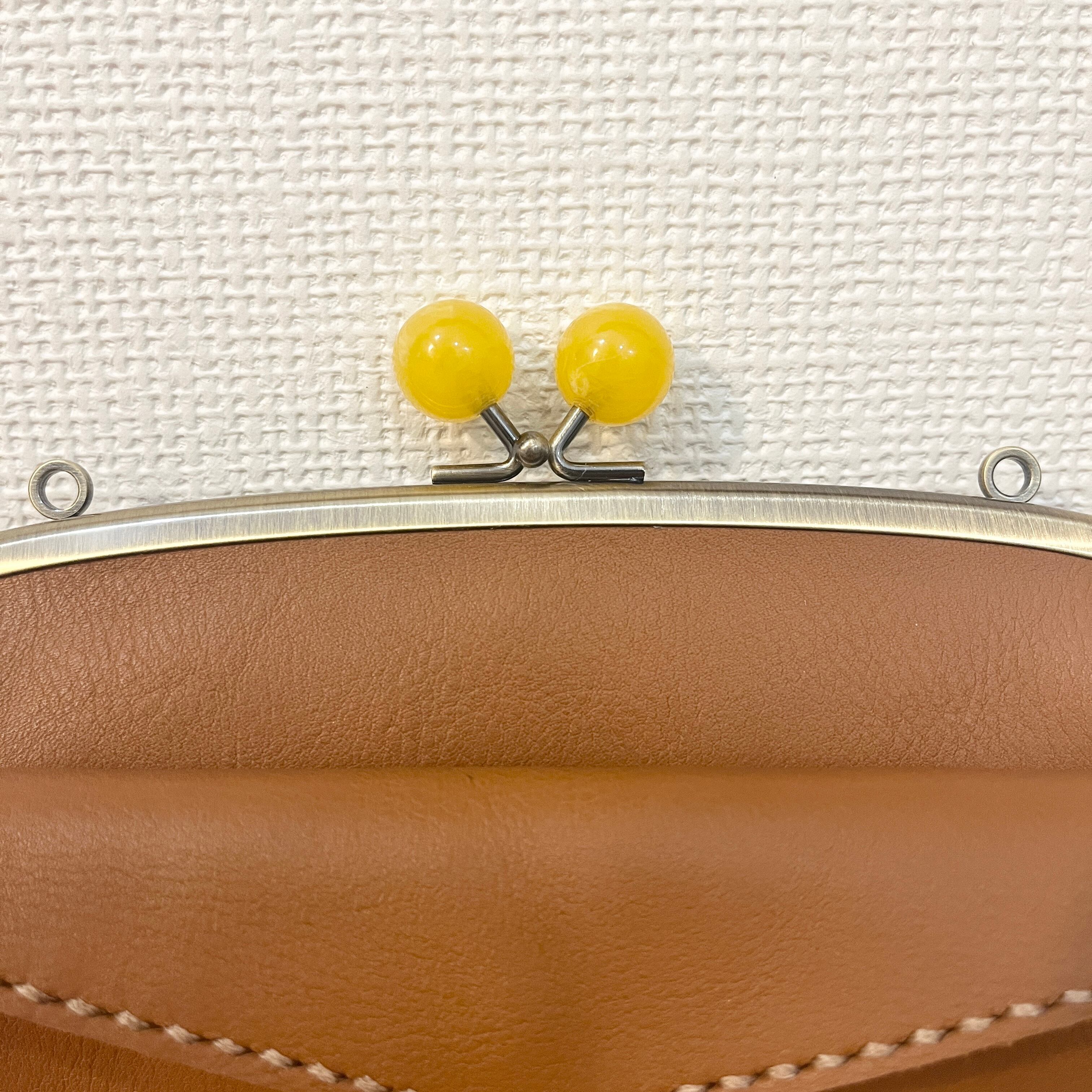 がまぐちのパッチン部分がコロンとした黄色の玉。