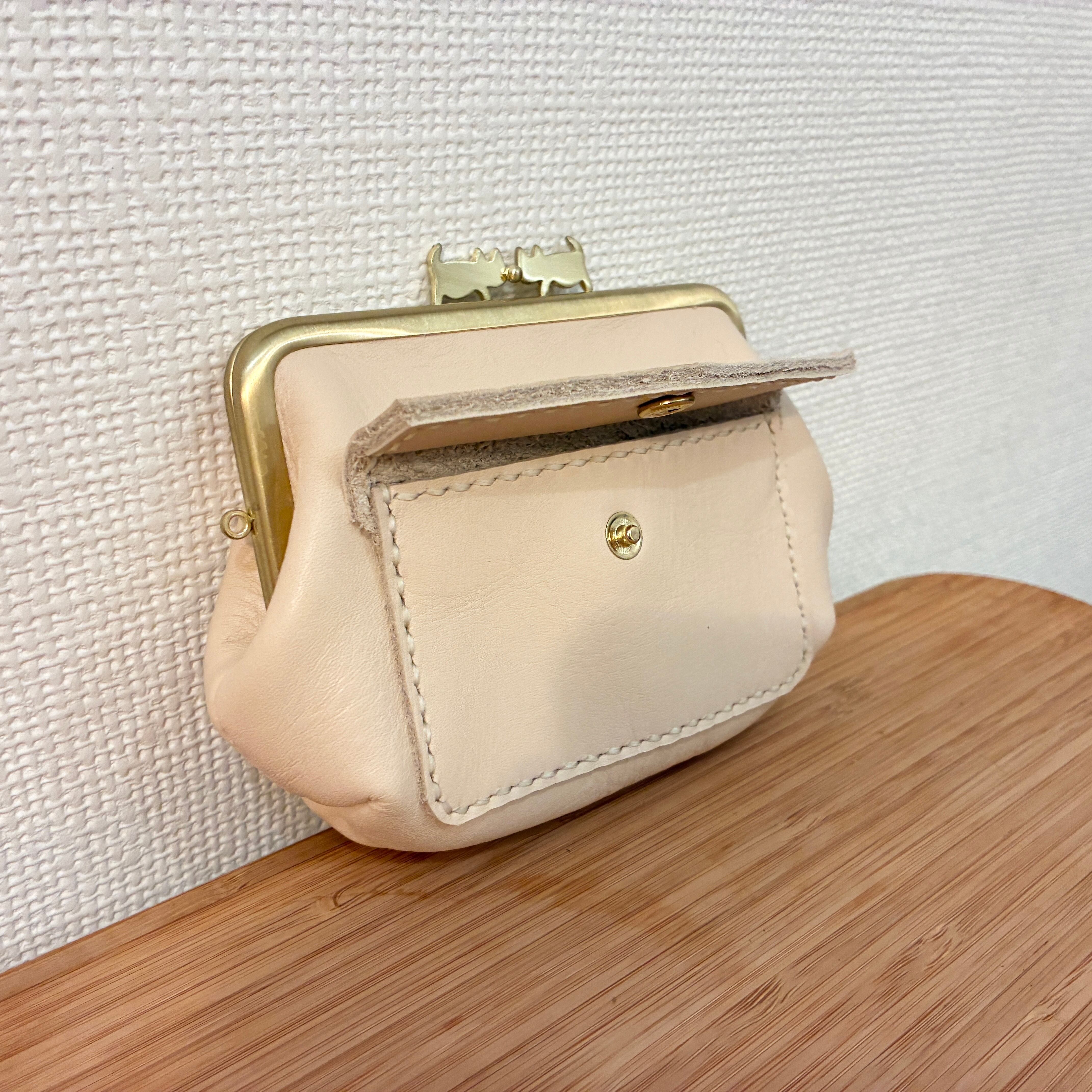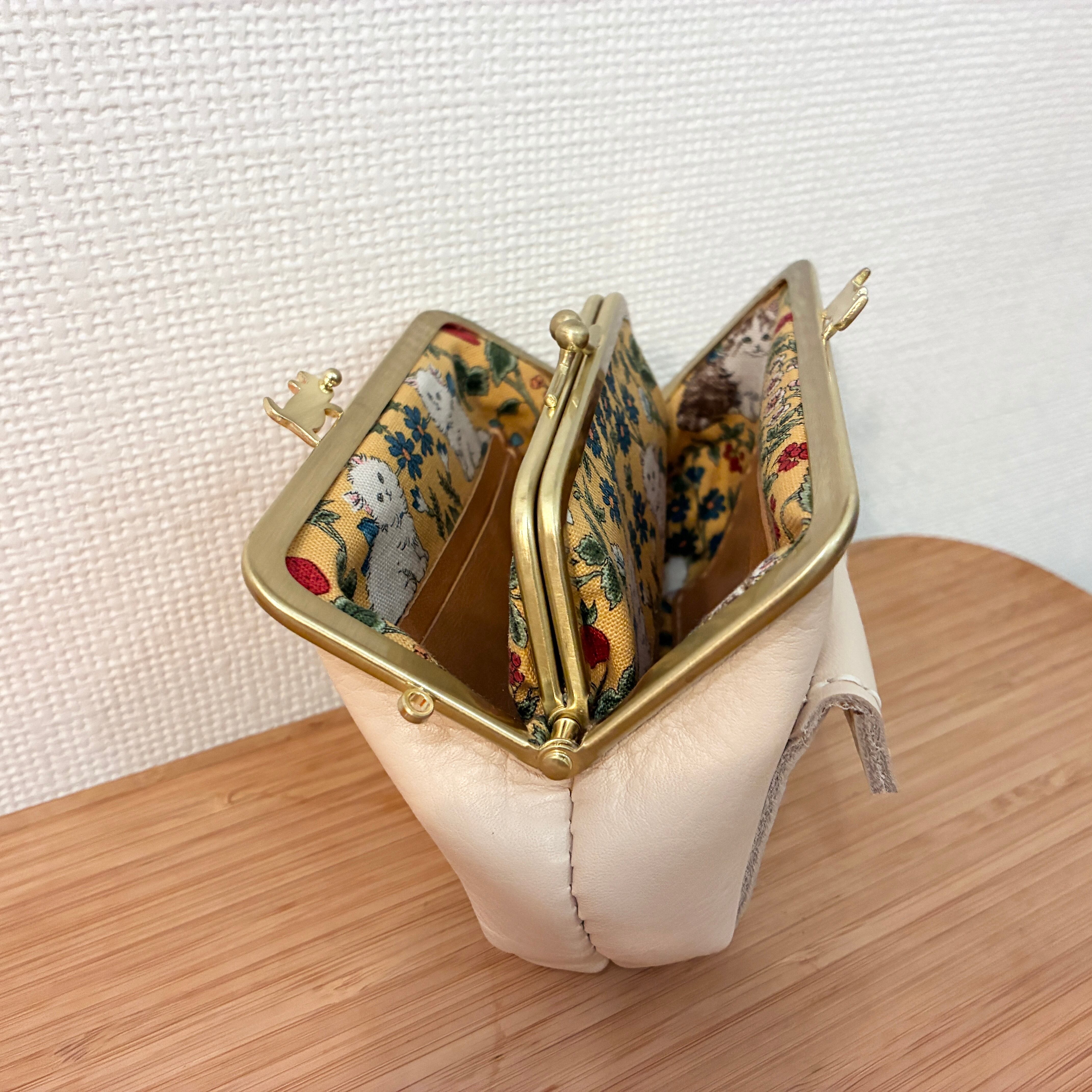 ニャンコでパッチンの猫口金*ぱかっと開くとお部屋が3つの親子がまぐち♪外ポッケが付いた四角い本革ミニ財布