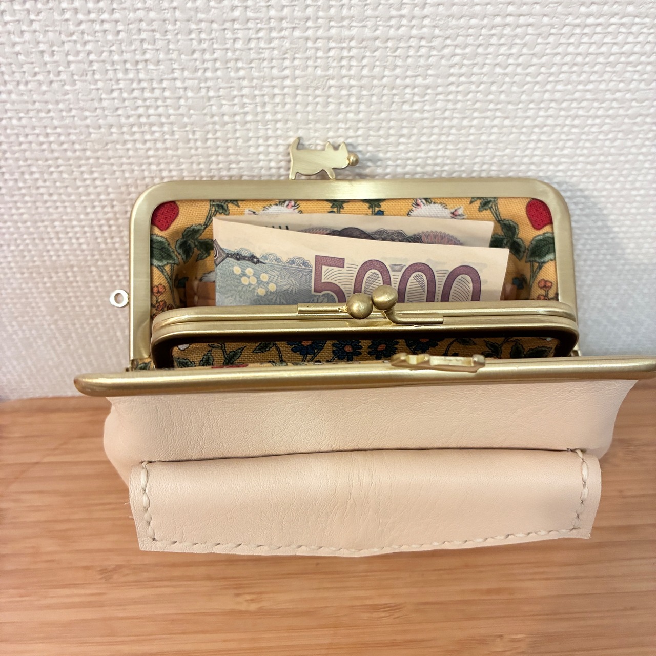 小銭入れとなる真ん中の子がまぐちは、上げ底仕様にしてあえて浅めにすることで小銭を取り出しやすくしました。