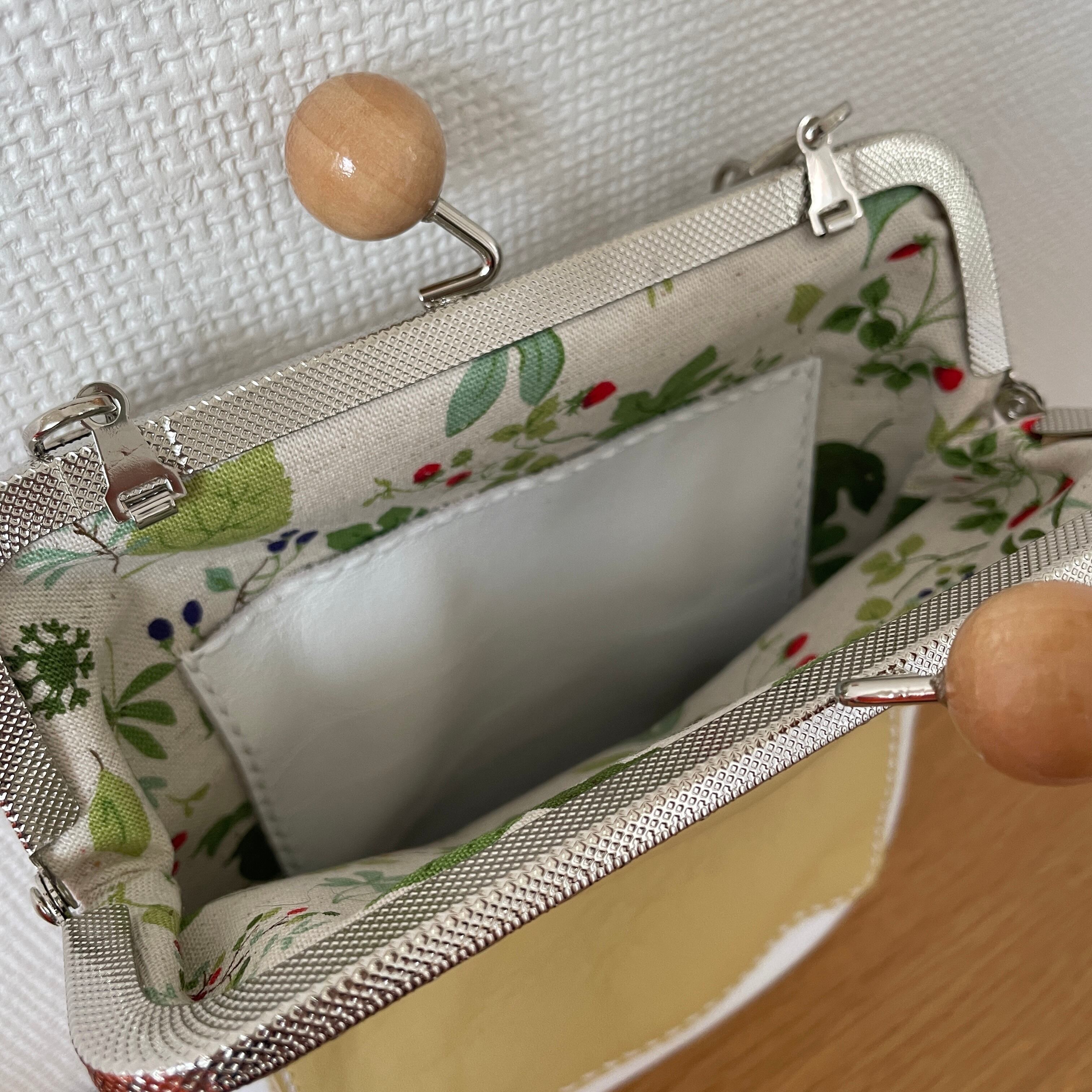 口金サイズが幅16cmなのでスマホはもちろん、小さめのお財布なら収納できる場合もありそうです。
